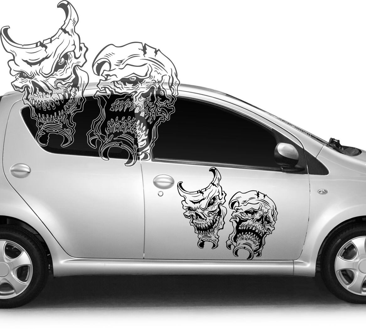 Startseite » Autoaufkleber » Skelett | skulls | Monsters » Auto Aufkleber Autotattoo 2 Schädel Masken Gesichter Skull