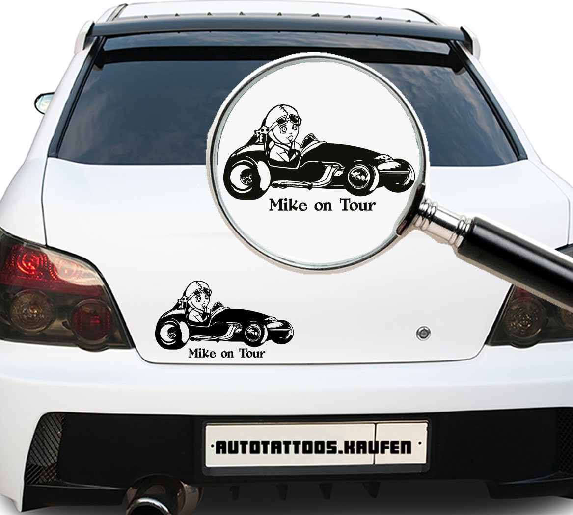 Startseite » Aufkleber mit Wunschname » ... on Board | Tour » Autotattoo Baby on Wunschname on Tour Rennfahrer Bobby Car